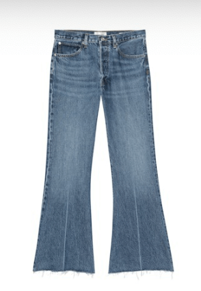 This laid-back jean sits just above the hip, and breaks into a relaxed, wide-leg flare. Crafted in classic non-stretch denim with a raw, frayed hem for an authentic vintage feel.