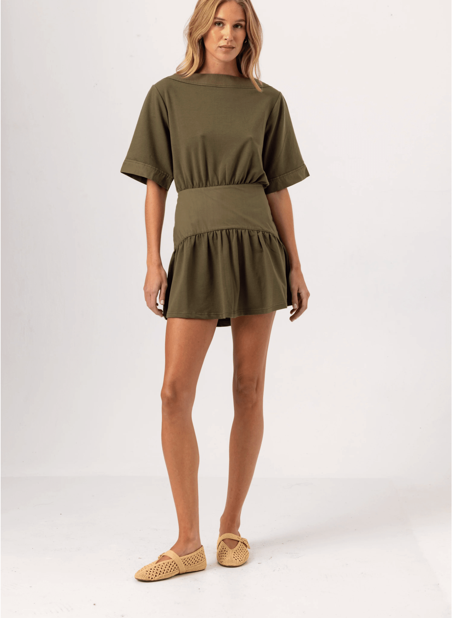 BOAT NECK DRESS WITH CINCHED WAIST