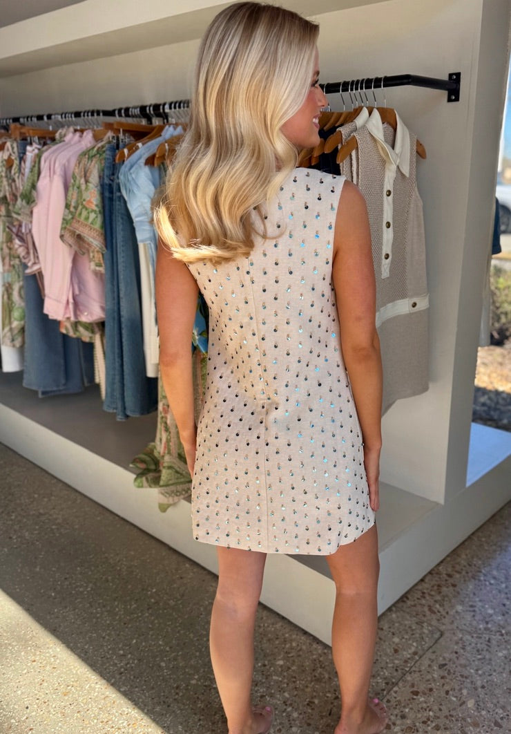 Embellished Linen Jardin Dress