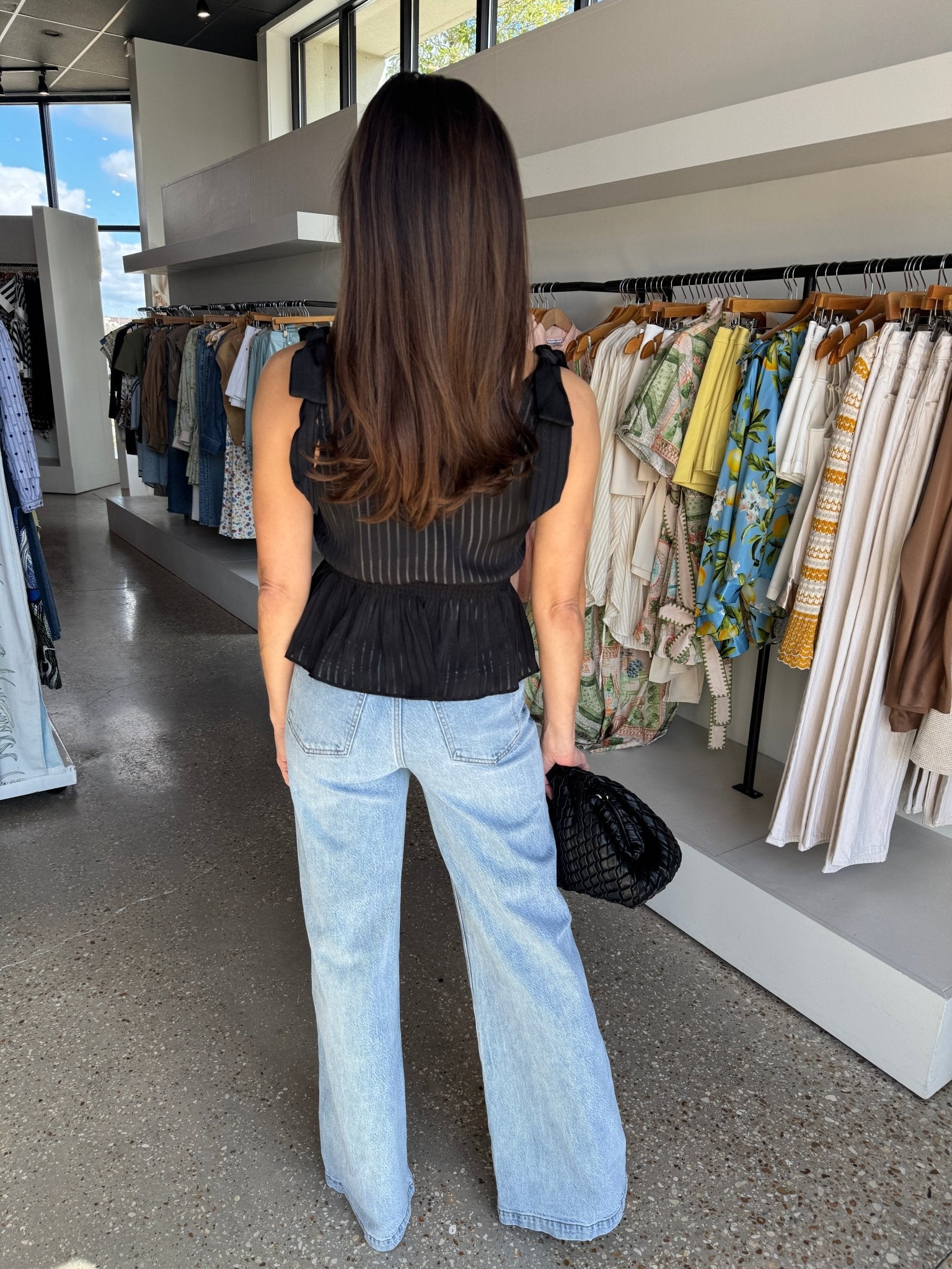 A little sultry, a little sweet. The LouLou Top plays with sheer texture and soft structure, giving you that dressed-up feel without trying too hard. It’s one of those tops that quietly steals the spotlight.