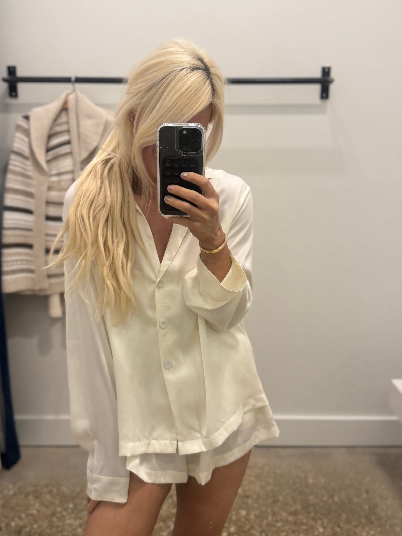 White Silk Button up Short SeEnjoy the blissful comfort of our Washable Silk Button Up Long Sleeve Short Set by Lunya. This lounge set is designed to provide you with the ultimate dreamstate experience. The silk fabric, both luxurious and practical, can be easily washed and worn, making it perfect for those restful moments in your day. Revel in the ease and elegance of this set, and you might just find yourself saying, 'let's go back to bed.'