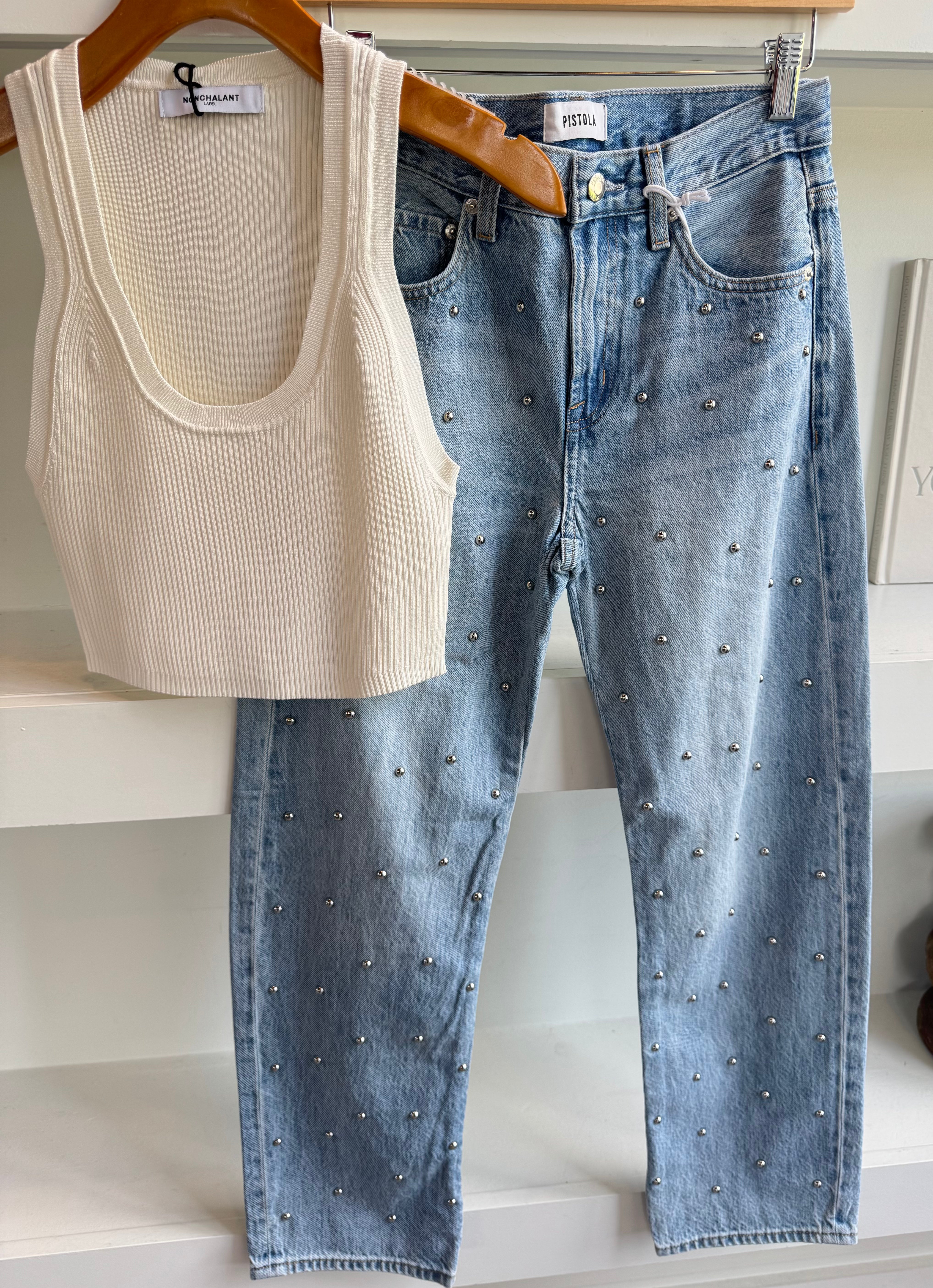 White Carolyn Crystal Denim Pants - Amor Lafayette