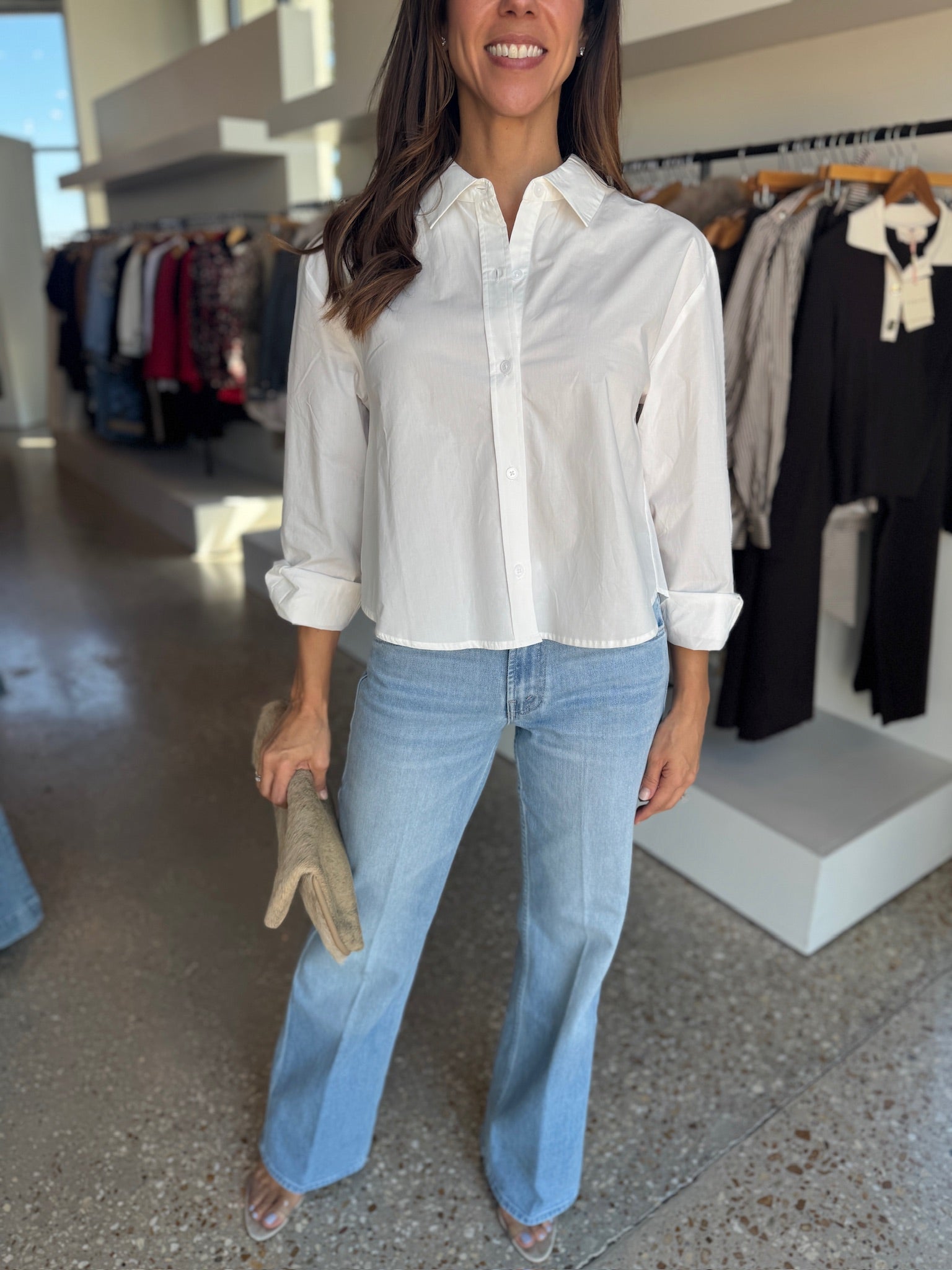Tuck in a lightweight knit or cropped sweater for a refined, everyday look. Pair with heeled sandals or loafers for instant polish, and finish with a slim clutch for an understated, confident vibe.