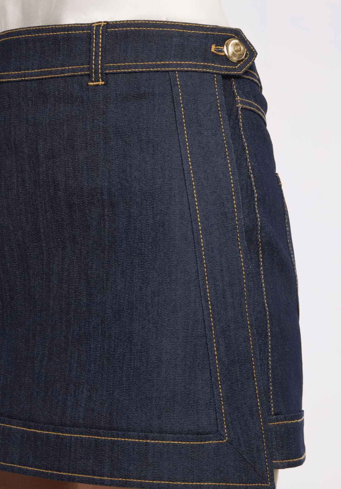 The Larsa Jean Skort delivers the best of both worlds: elegant skirt silhouette in front, comfortable shorts functionality in back. Crafted in denim, it pairs seamlessly with all your basics for effortless, versatile styling.