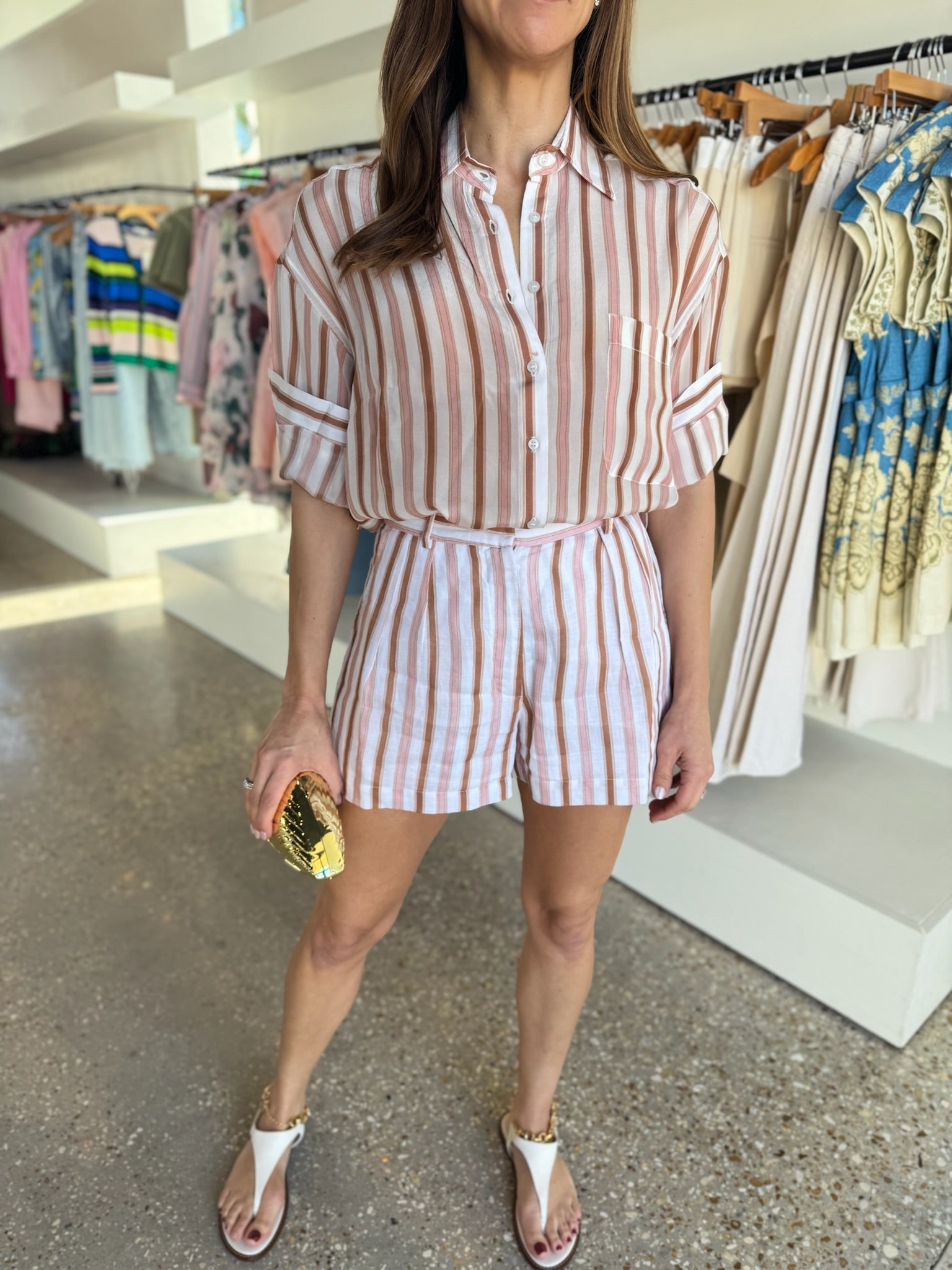 This is the kind of top that makes getting dressed feel effortless. The soft multi-stripe pattern feels fresh and summery, while the classic button-up silhouette keeps it polished and timeless. Easy, elevated, and endlessly versatile, it’s a warm-weather staple you’ll reach for again and again.