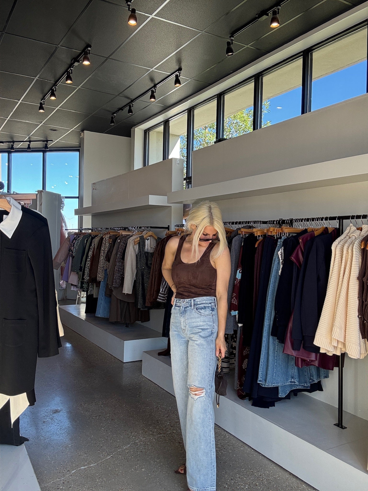 The Lisbeth Bodysuit is made from a soft, faux suede and has a flattering, scoop neck. Wear it with jeans alone or layer a cardigan over it.