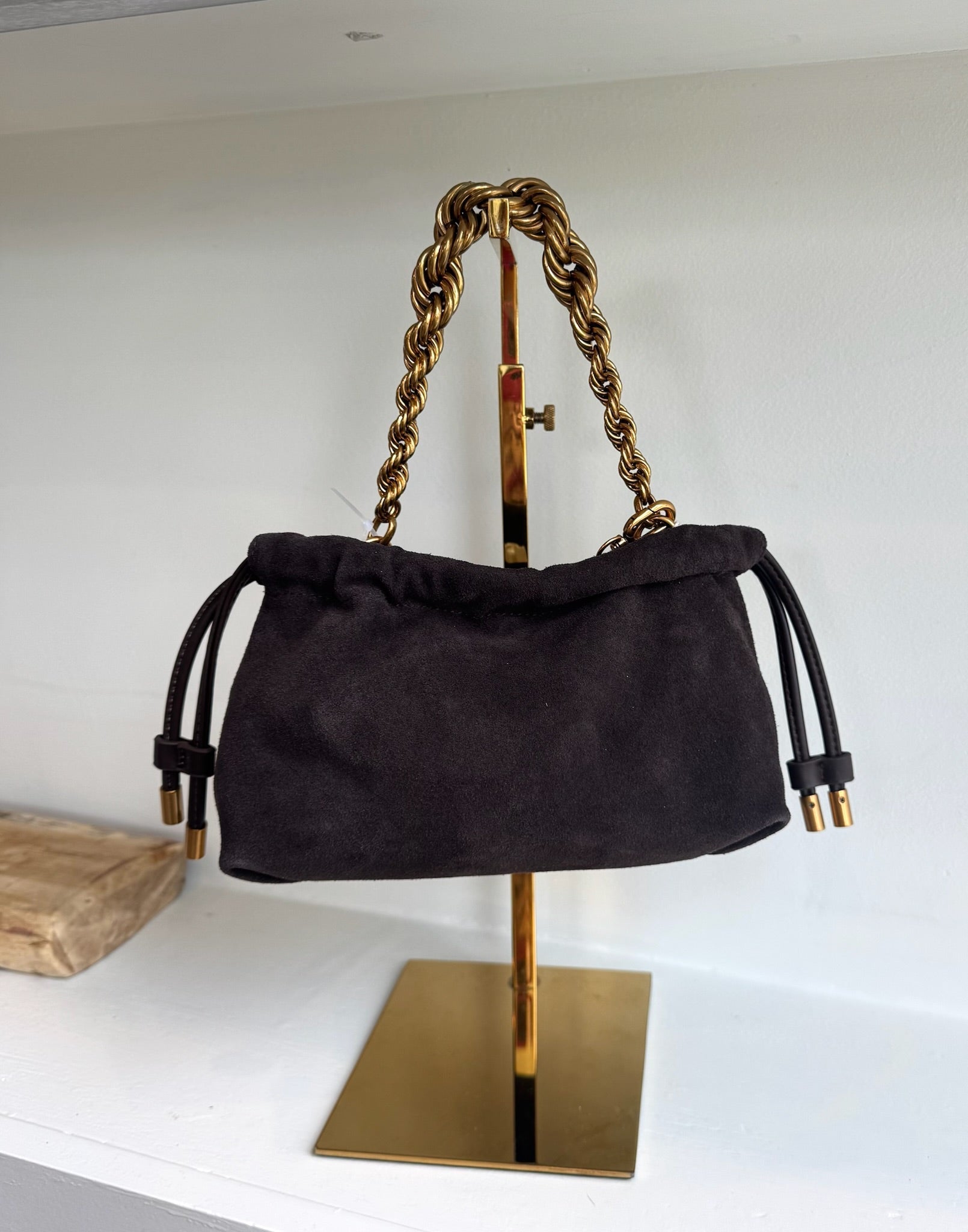 CLEO’s luxurious details elevate any outfit. Rich suede hues meet a chunky gold chain, drawstring closure, and hands-free crossbody strap for a cool yet dressy accessory.