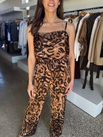 Lounge meets luxe in the Multi Zali Set. With its abstract animal-inspired print, silky finish, and relaxed silhouette, this matching cami and wide-leg pant duo strikes the perfect balance between statement and ease—equally at home on vacation or a night out.