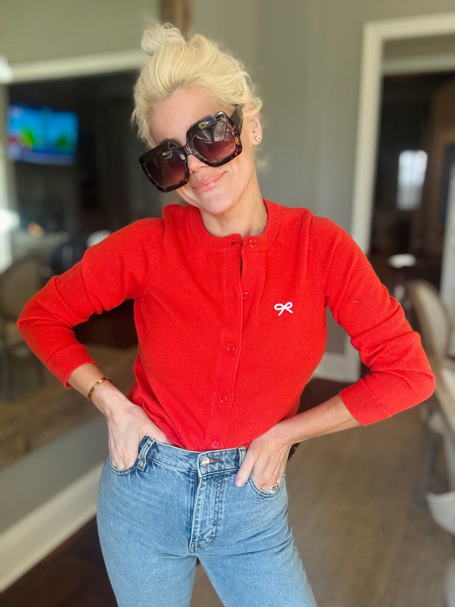 • Button-front cardigan style