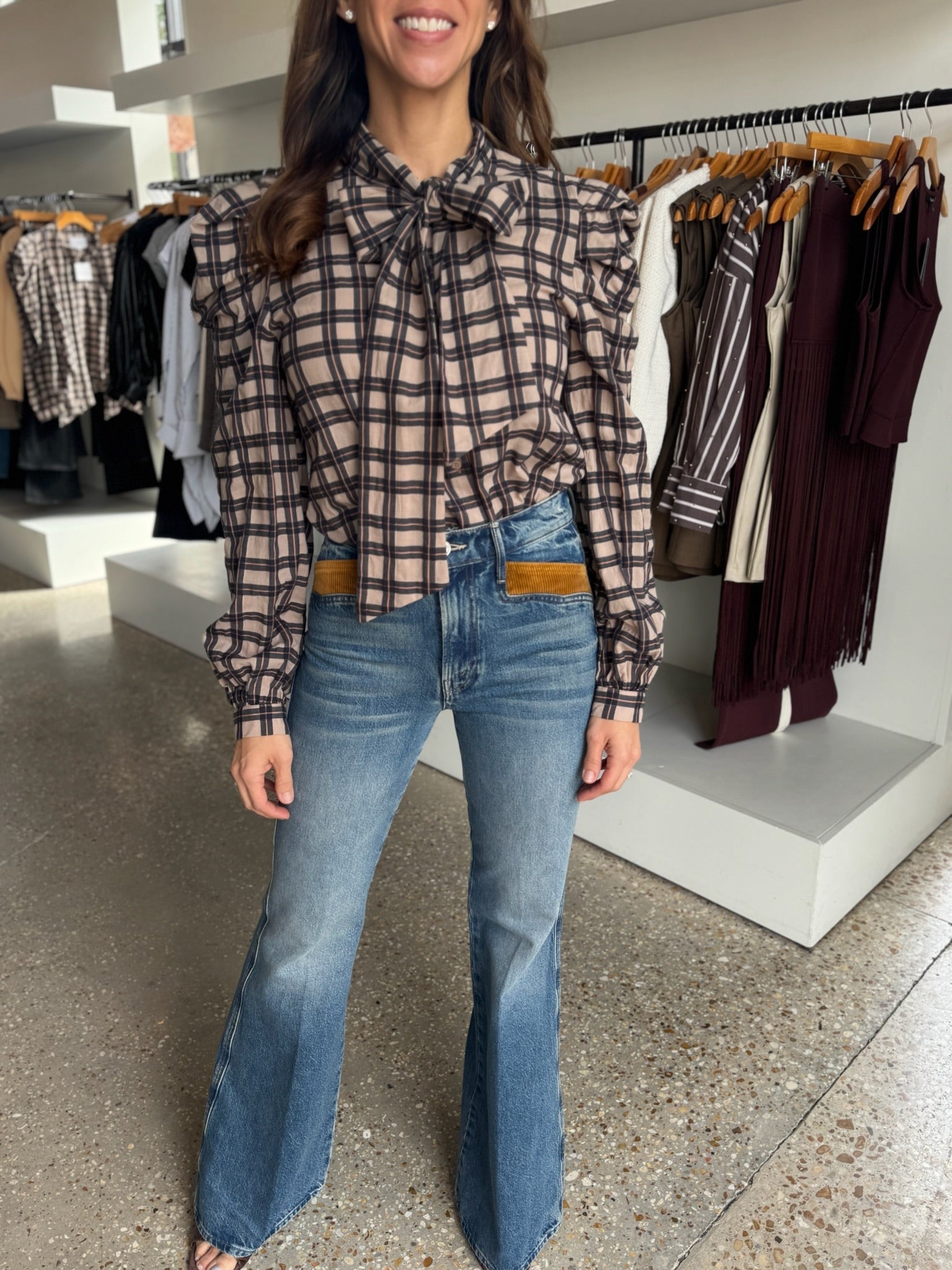 A blast from the past. A high-rise flare with a zip fly, off-center back pockets, a long 34-inch inseam and a clean hem. Made from rigid SUPERIOR denim, Remember When is a mid-blue with whiskering and fading at the knees and corduroy trim on the pockets.