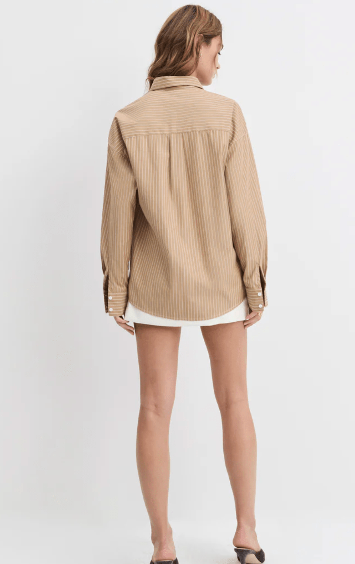 With a relaxed fit and pointed collar, The Ex-Boyfriend Shirt in Oatmeal Stripe is an oversized button up cut from soft cotton. Our favorite way to wear this shirt is, actually, any way–tied, tucked, half-tucked, and unbuttoned.