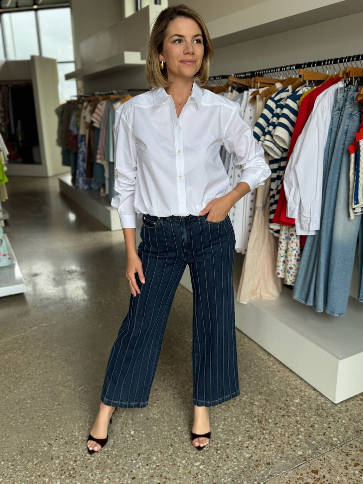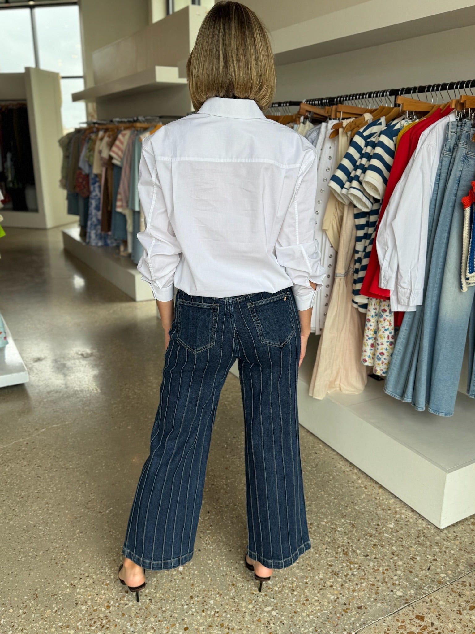 Meet our new Romy, designed with an elasticated hem that creates the look of a perfectly tucked-in shirt—without the bulk or fuss.